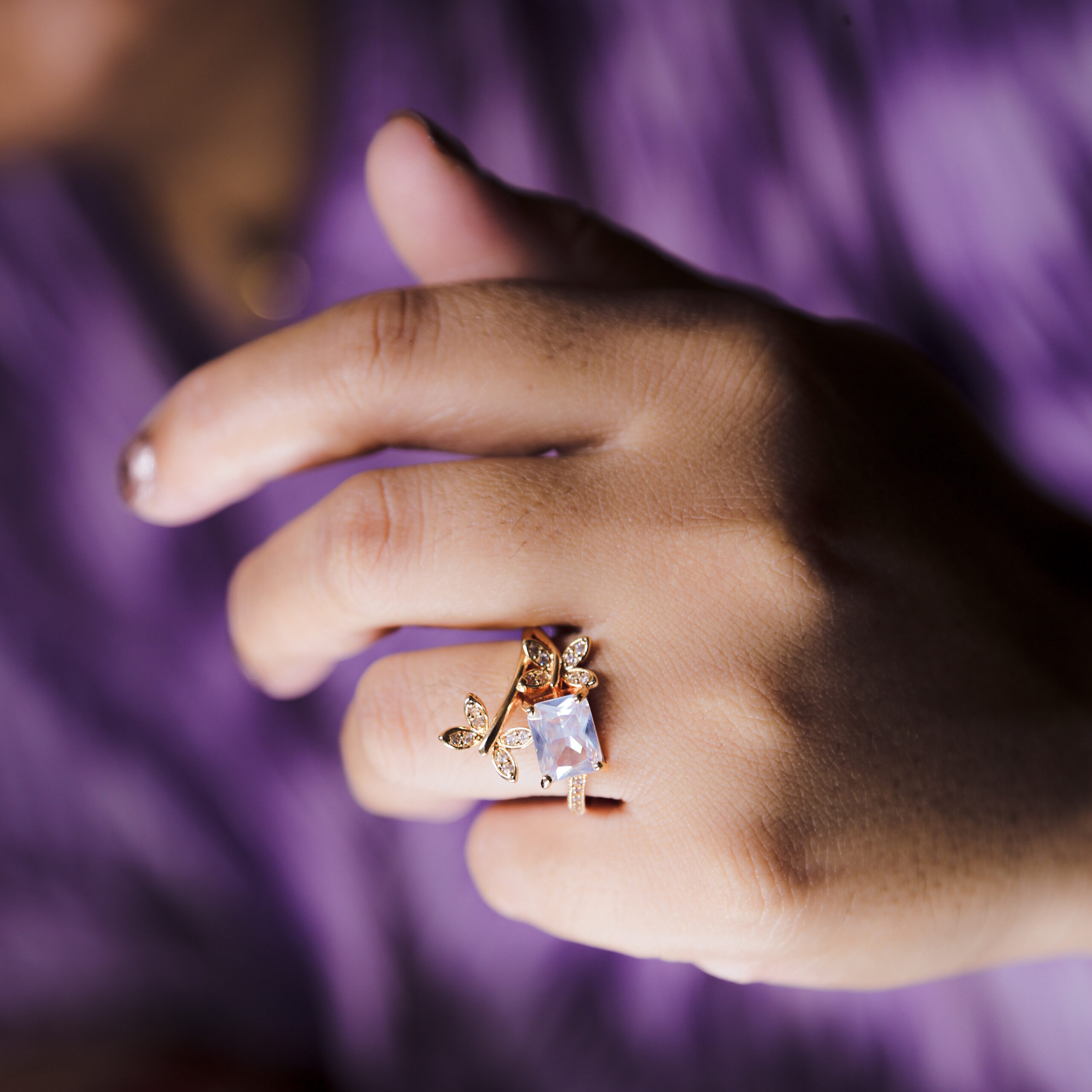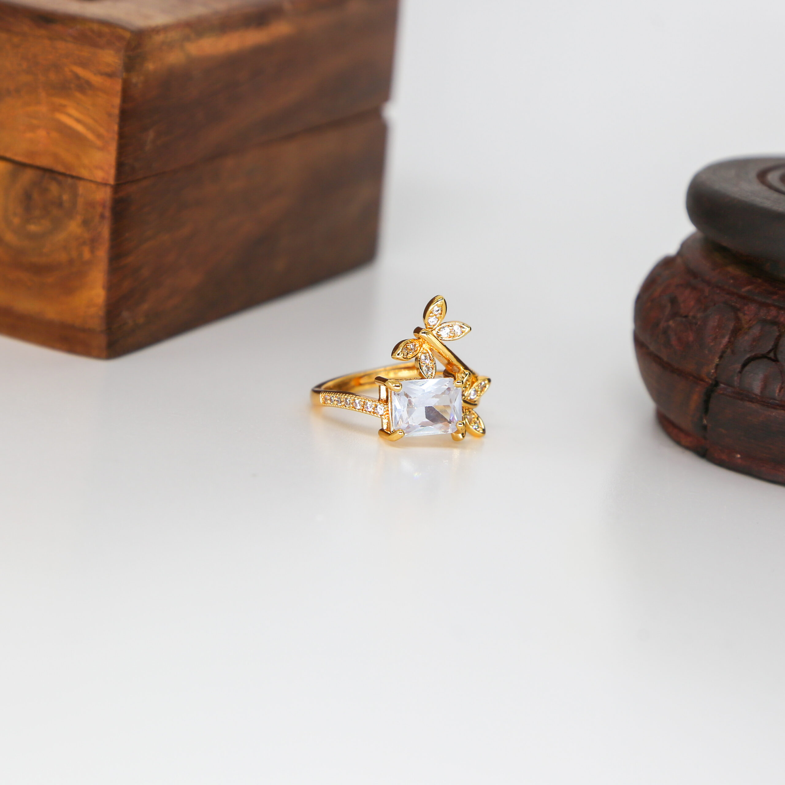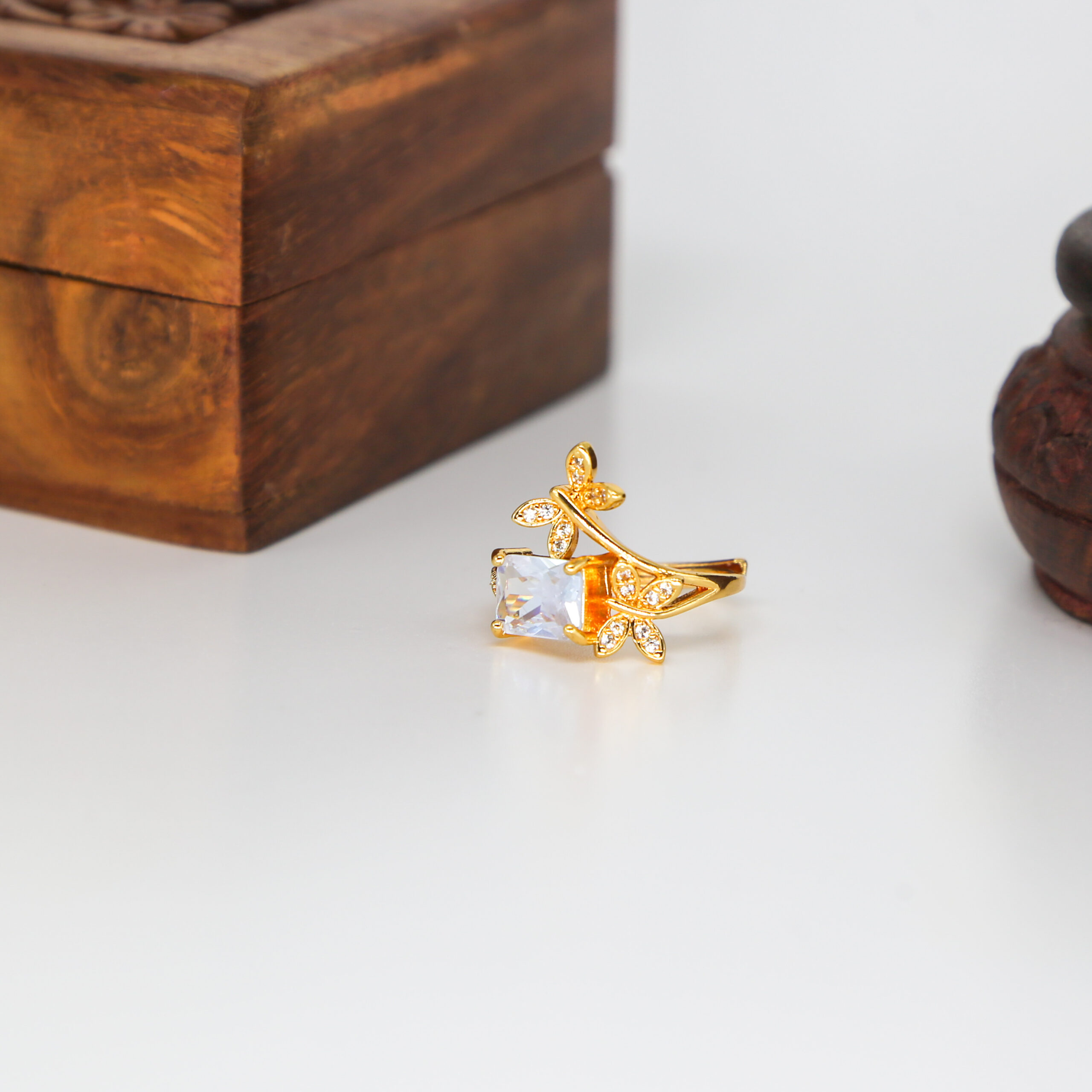 Elegant White Small Stone Gold Plated Crystal Ring for Girls/Women
