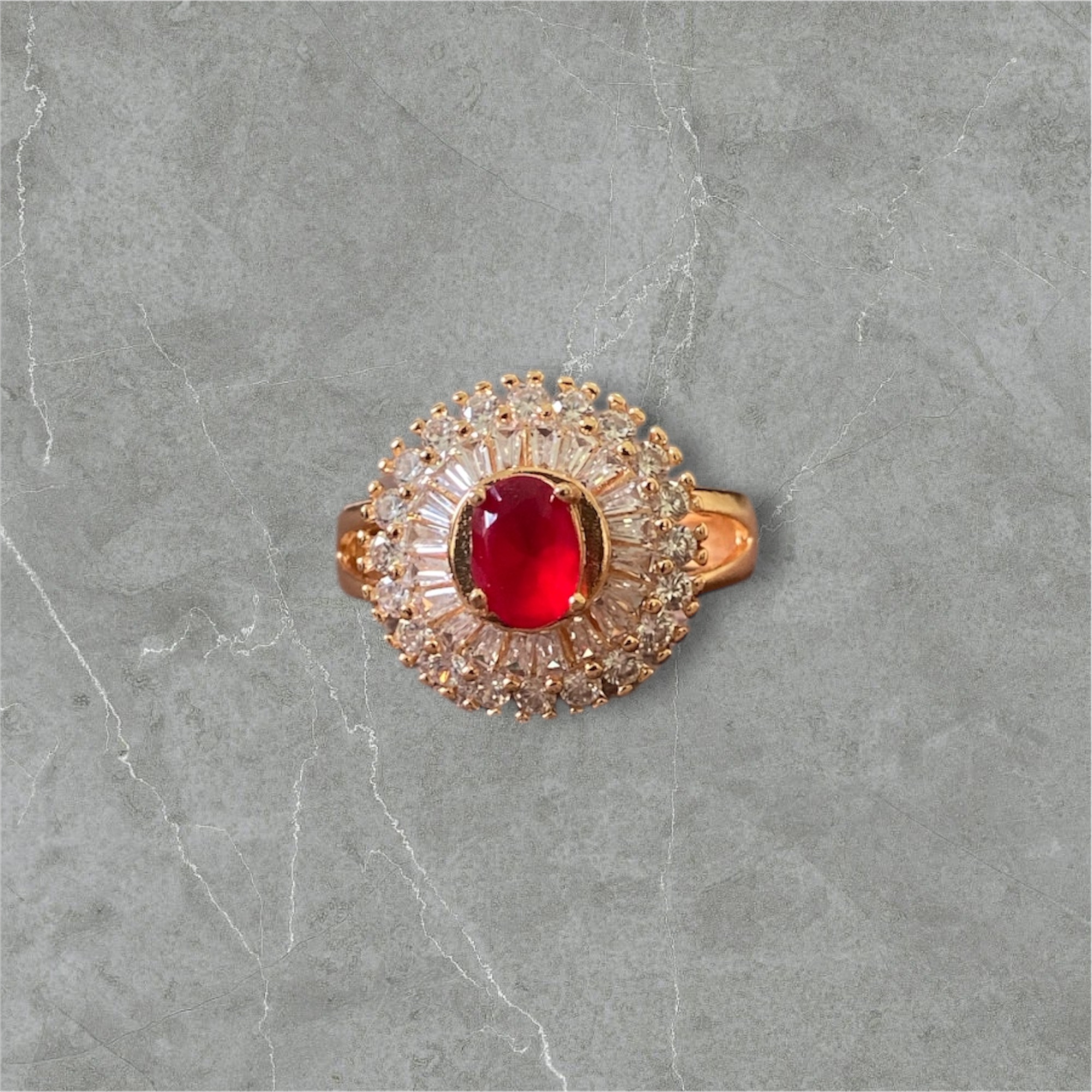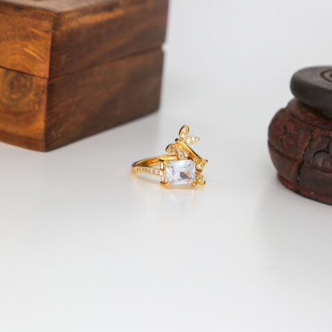 THE ELEGANT MAJESTY – GOLDEN CUBIC ZIRCONIA RING