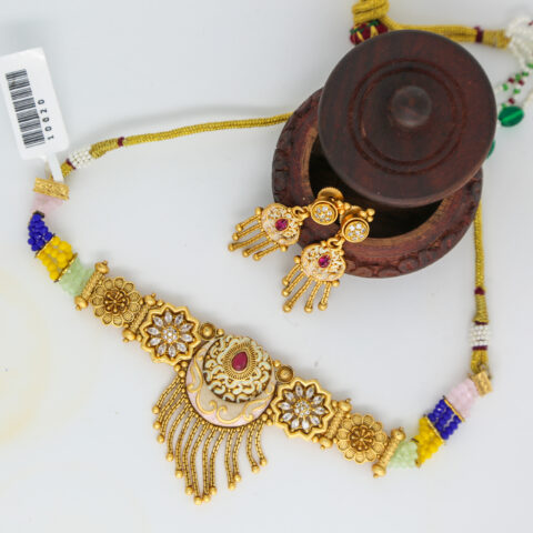 Stunning Gold Plated Stone Necklace Set With Pearl Drop Earring